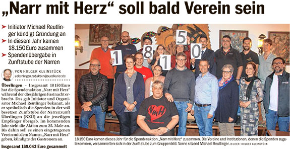 Der 16. Überlinger MännerKaffee erbrachte für "Narr‘ mit Herz 2022"