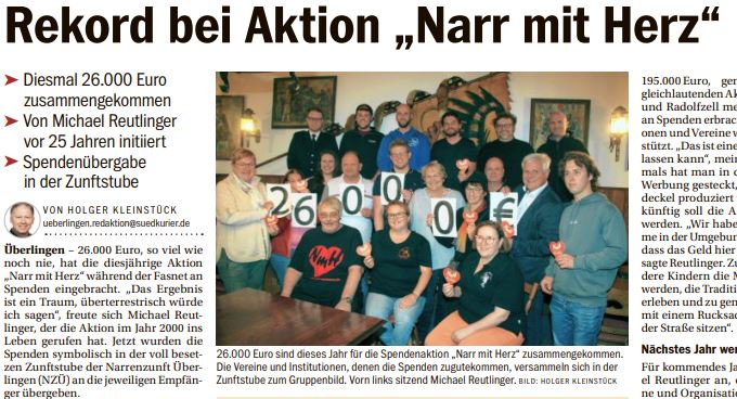 Der 16. Überlinger MännerKaffee erbrachte für "Narr‘ mit Herz 2022"